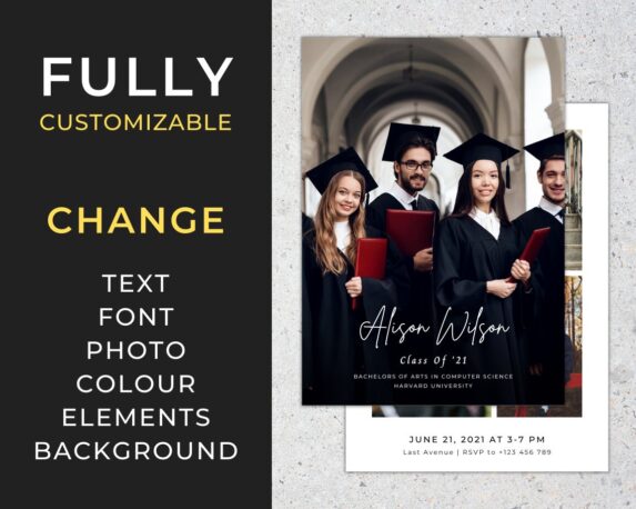 Graduation Announcement Card Canva Template, College Graduation Invitation Template, Minimalist Grad Announcement Invite, Instant Download