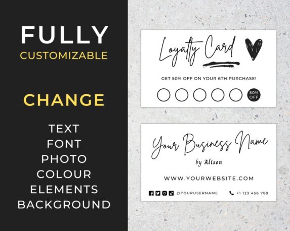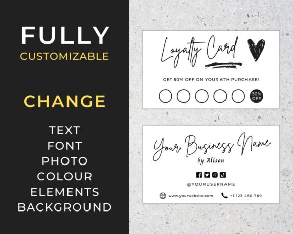 Minimalist Loyalty Card Template, Editable Reward Punch Card, Discount Card Template, Modern Business Card Canva Template, DIY Branding Card