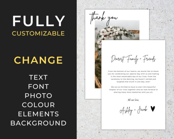 Wedding Thank You Card With Photo Template, Minimalist Wedding Photo Thank You Card, Modern Wedding Personalized Thank You, Canva Template