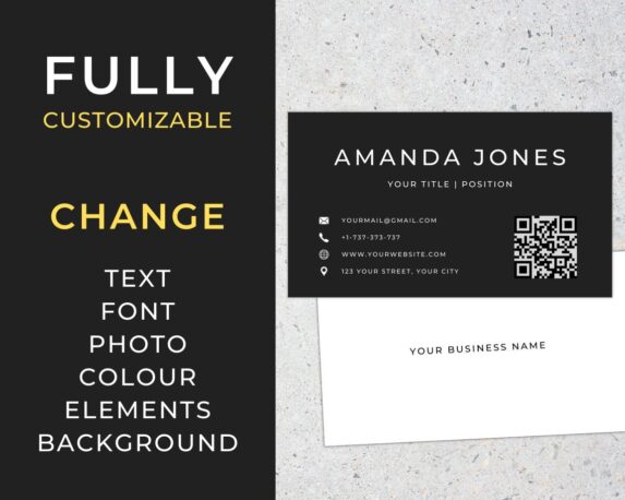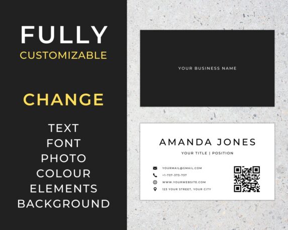 Business Card Template QR Code, Editable Minimalist Business Card Design, DIY Modern Custom Business Card, Canva Template, Instant Download